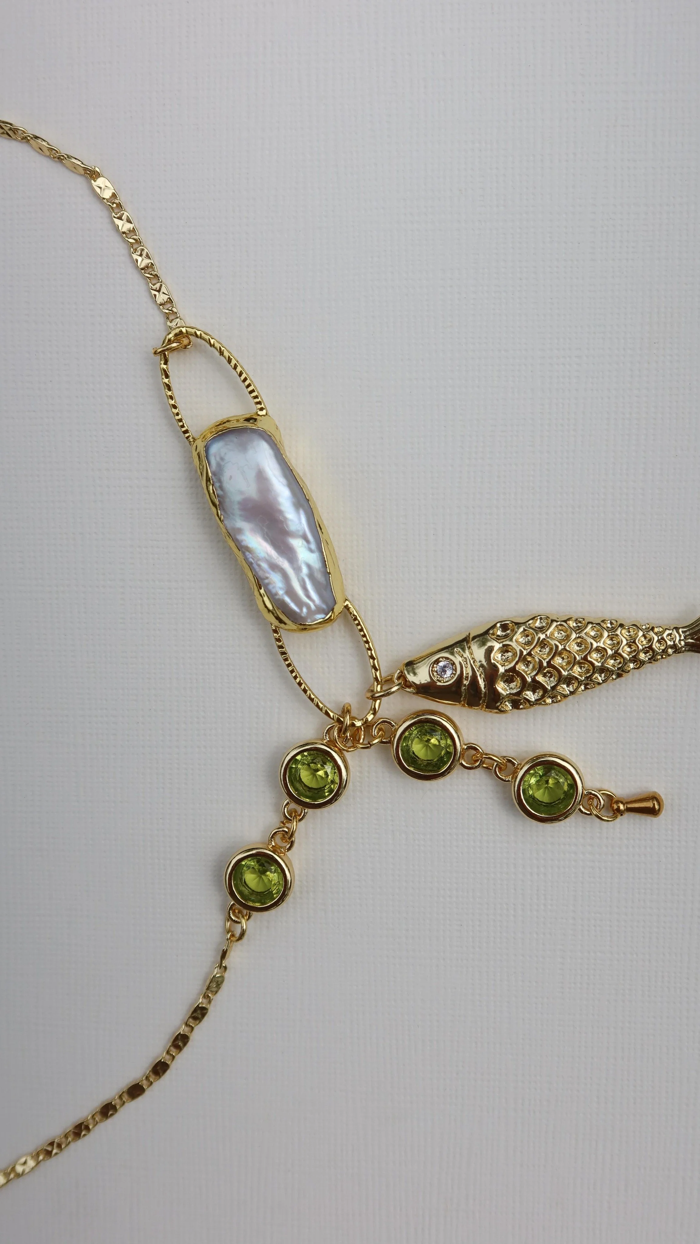 I bought the Pearl Diamond necklace and it was a great decision. I had been wanting some pearly, beach aesthetic jewelry and this necklace is perfect. It doesn't tarnish and it goes with every outfit!