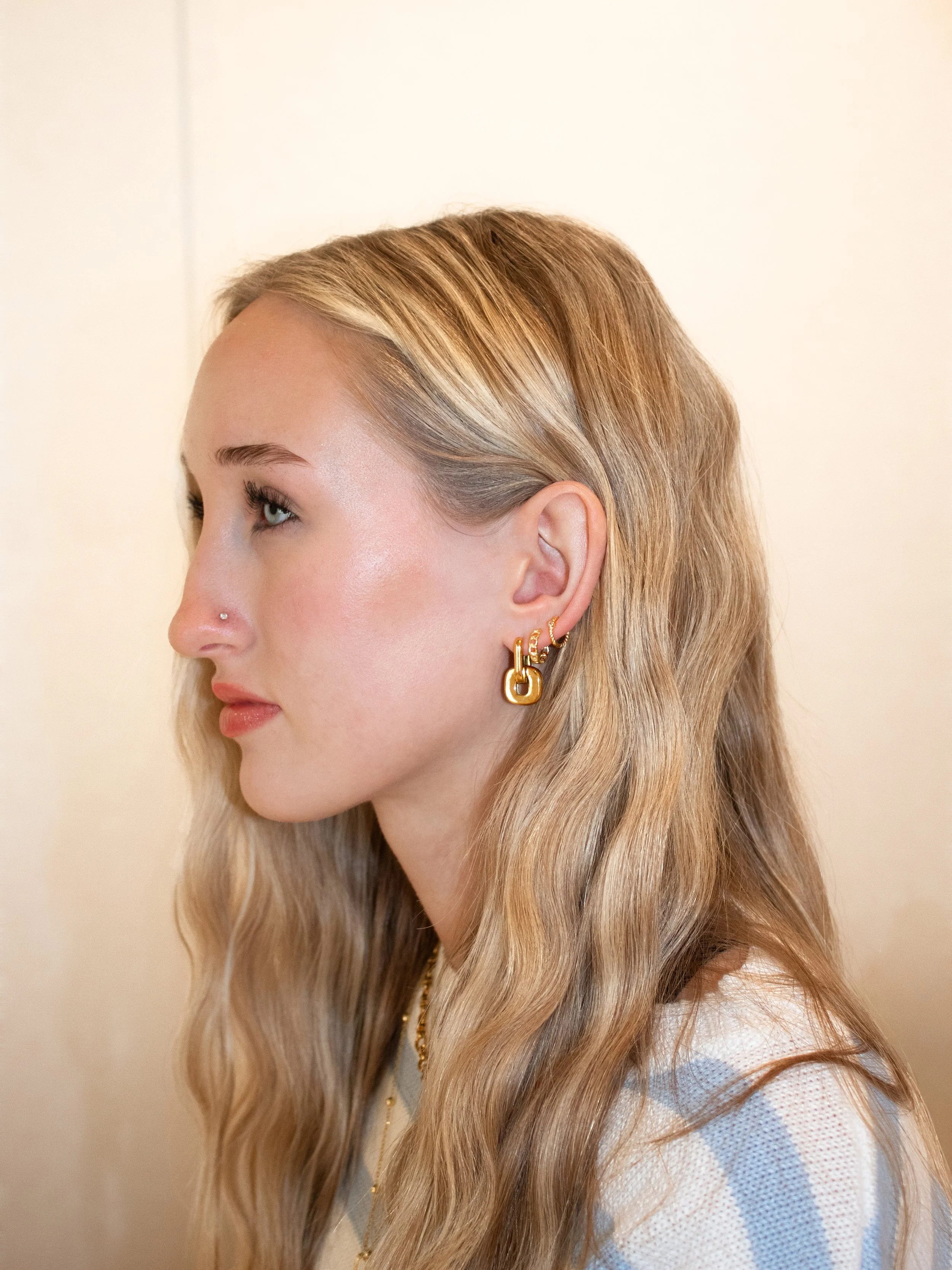 Classic hoops, reimagined. This pair features two smaller hoops dangling from the base, adding movement while staying sleek. An everyday basic that is sure to become a staple in your rotation, these medium-sized gold-tone hoops are lightweight and durable. They’re the kind of earrings that feel fresh every time you wear them.