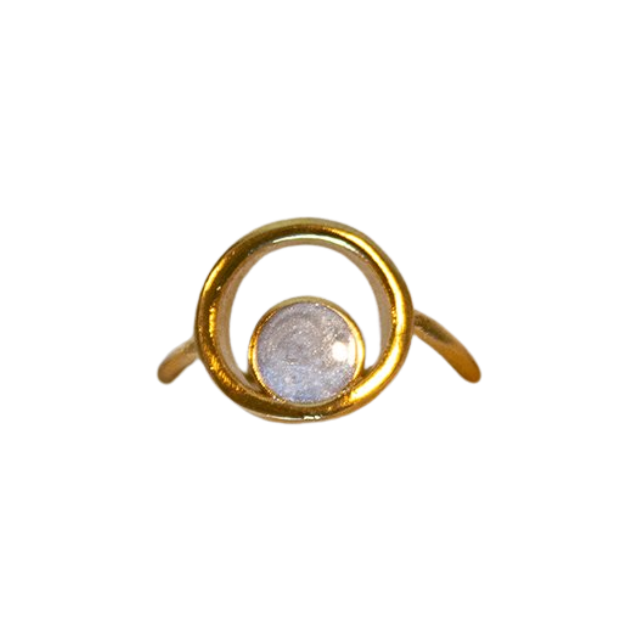 A chunky gold statement ring anchored by a freshwater pearl. Equal parts bold and refined, it’s the kind of piece that turns a simple outfit into something memorable.