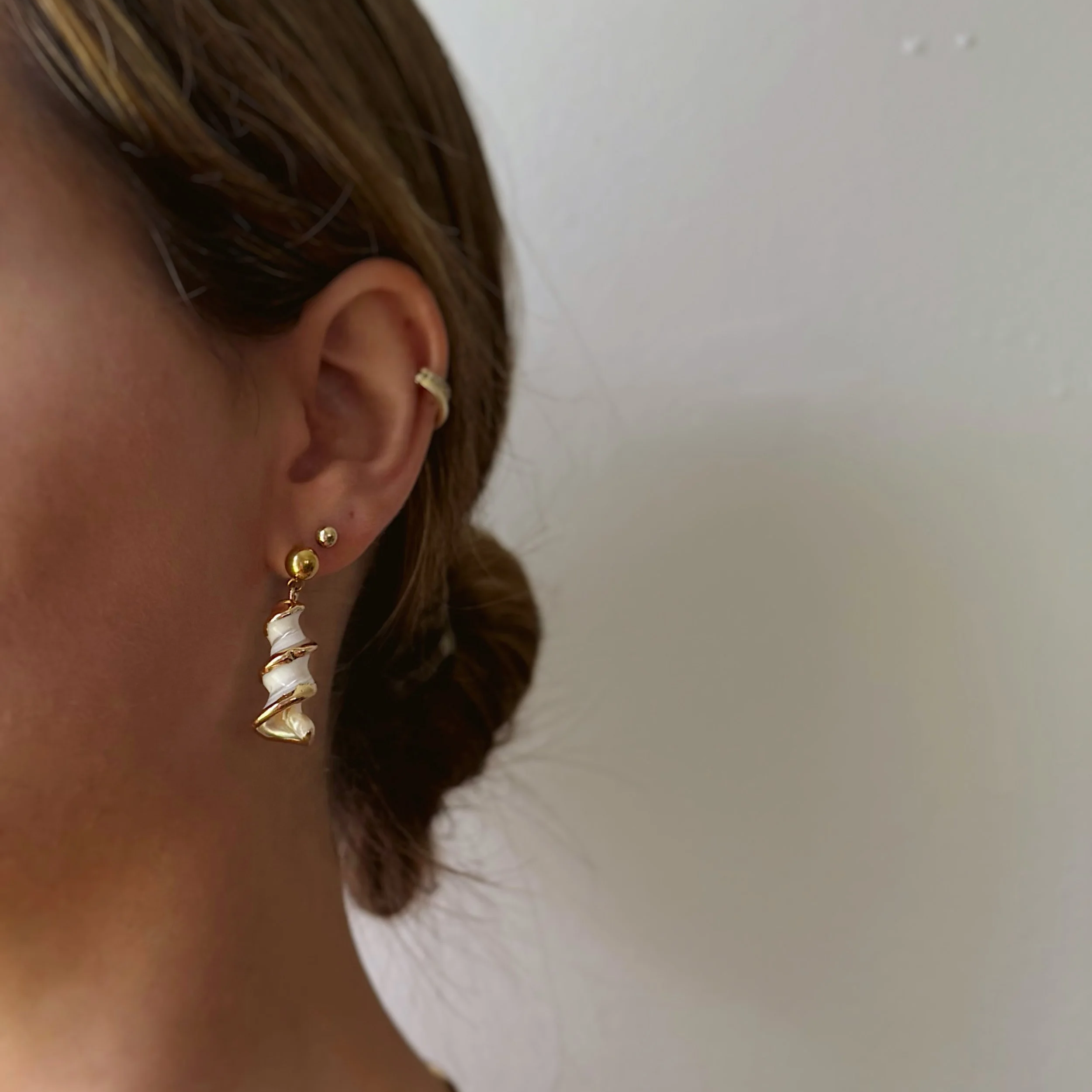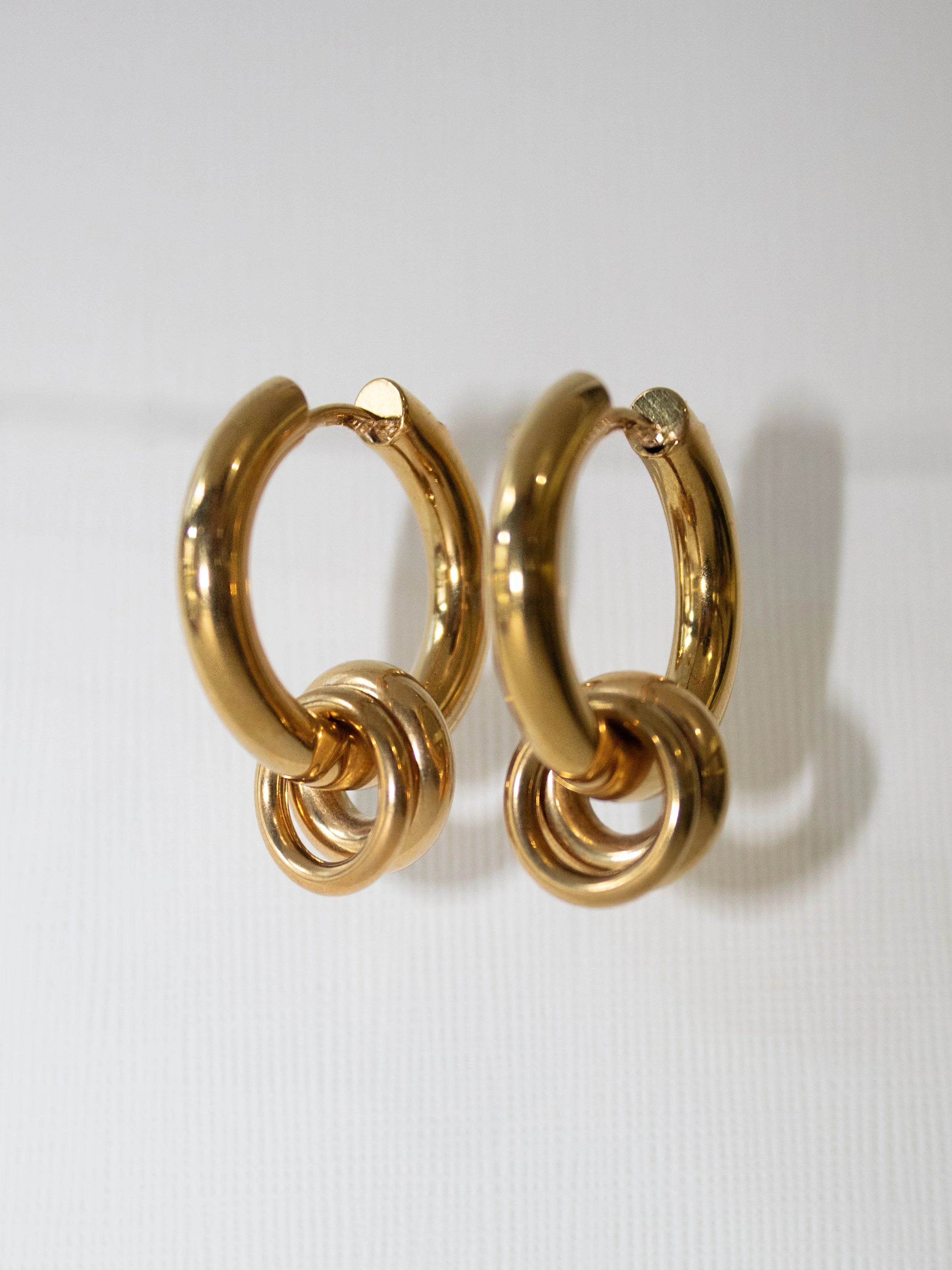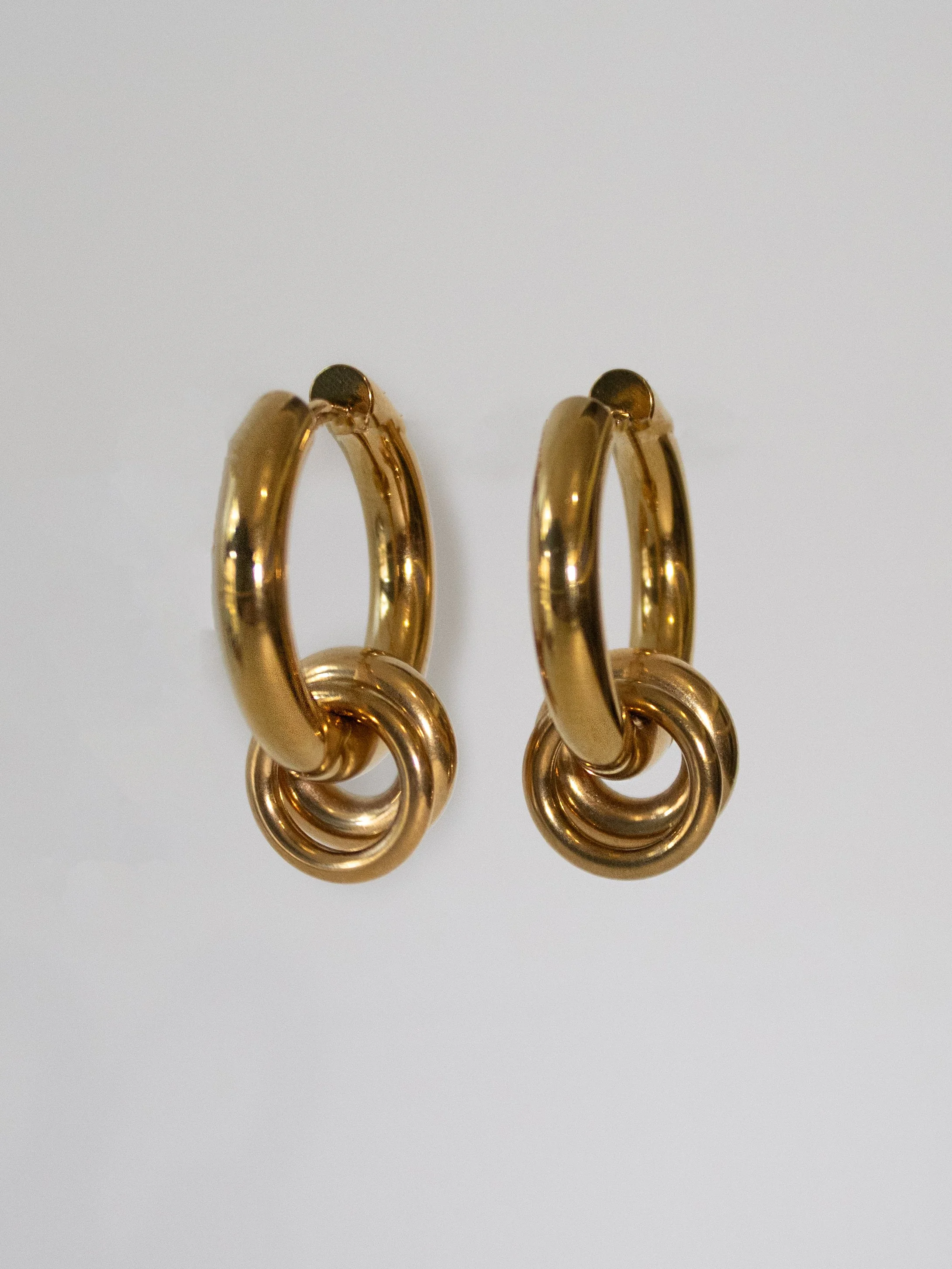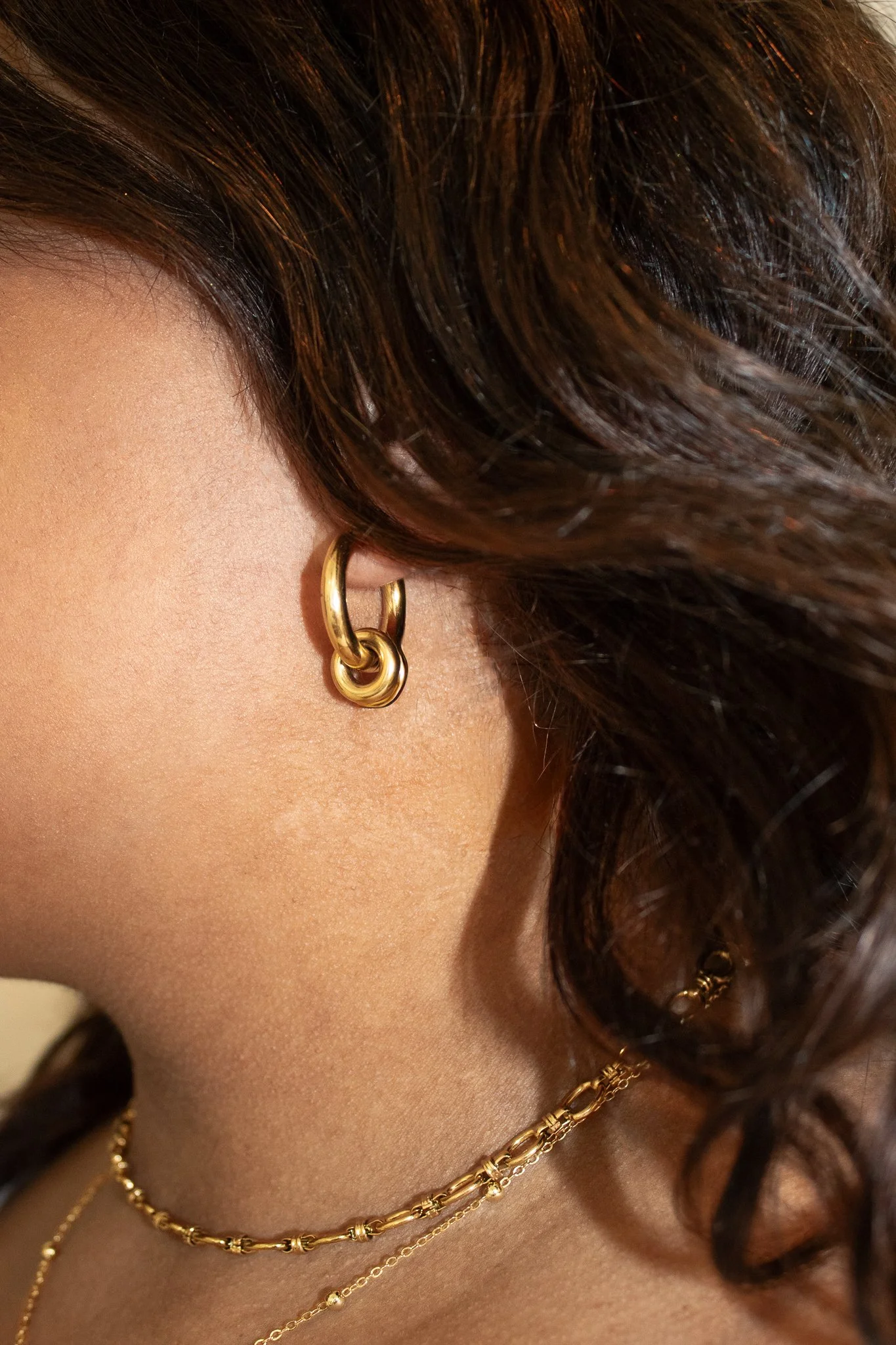 Small huggie hoops with a chain-inspired design. An elevated basic with a subtle edge, luxe finish, and texture. Their compact size makes them effortlessly versatile, perfect for wearing solo or layering to enhance any earring stack.