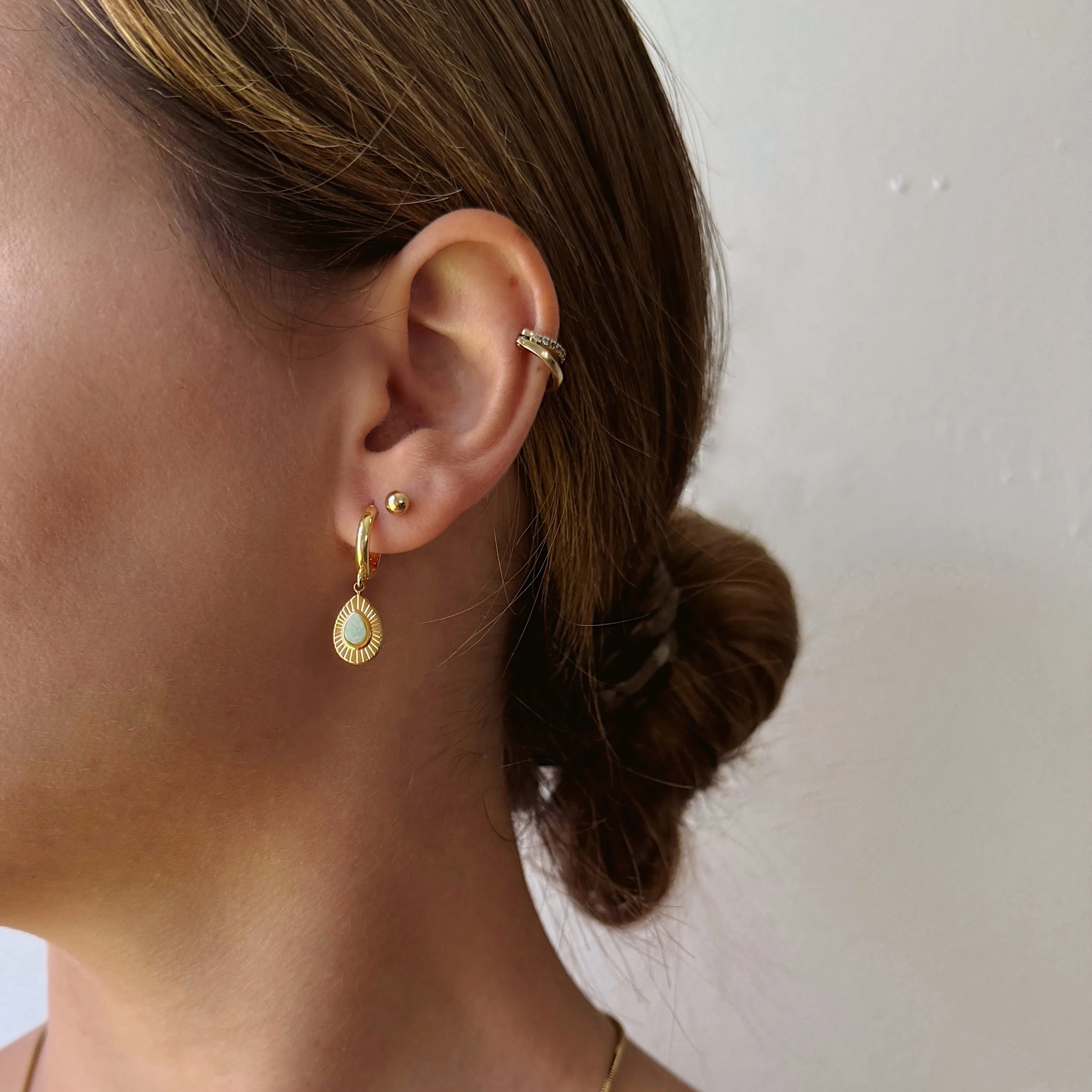 A sleek gold ring with inlaid cubic zirconia that radiates classic elegance. Balancing timeless style with modern refinement, it becomes a versatile stackable ring. Wear solo as an everyday staple or layer with other rings for a curated look.